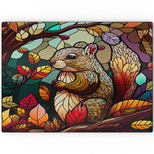 Squirrel in Autumn Stained Window Effect - Glass Chopping Board