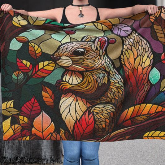 Squirrel in Autumn Stained Window Effect - Polar Fleece Blanket