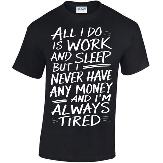 All I Do Is Work And Sleep But I Never Have Any Money And I'm Always Tired T-shirt