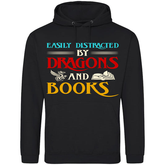 Easily Distracted By Dragons And Books Hoodie