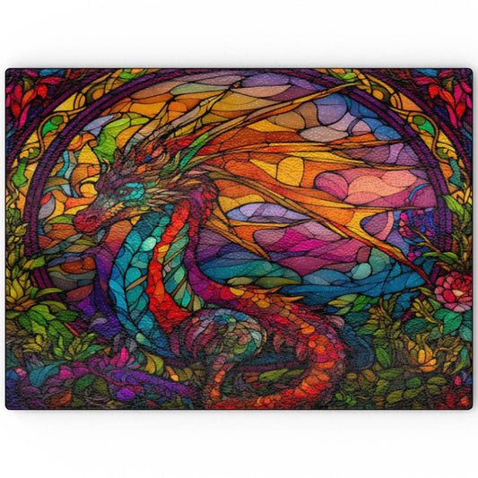 Magical Wishing Dragon (Stained Window Effect) - Glass Chopping Board