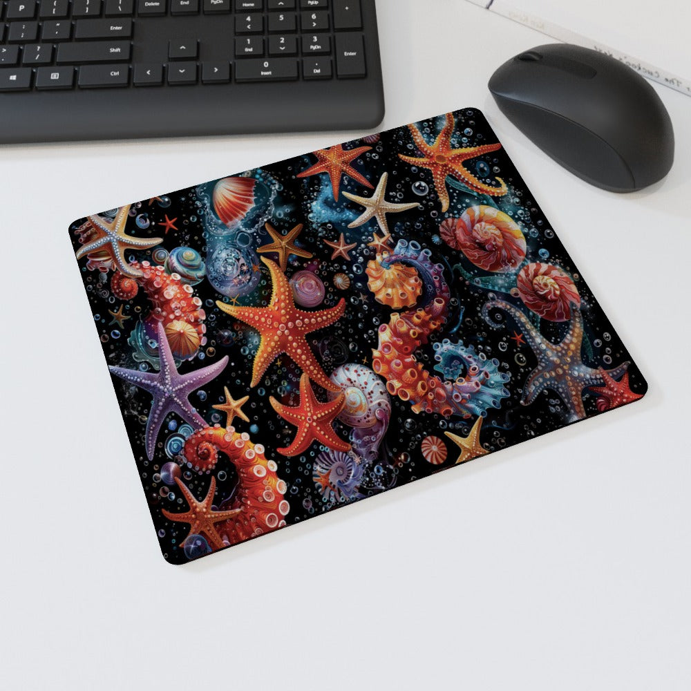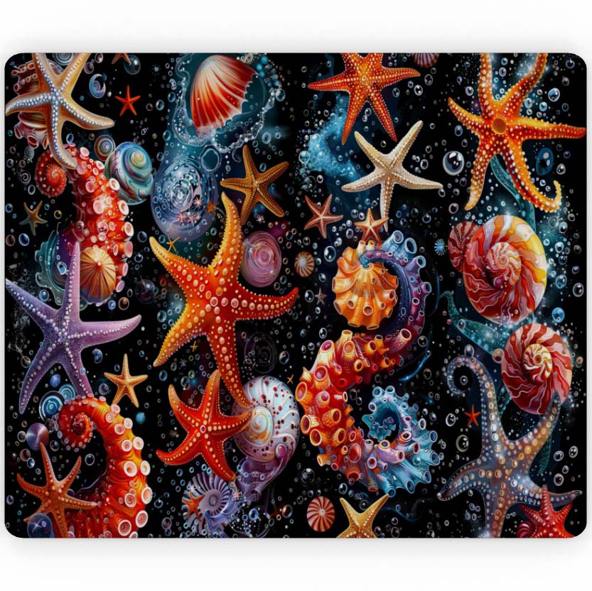 This mouse mat shows a quick snapshot of the wondrous magical world of sea life. Lots of Starfish with bubbles everywhere for a real feeling of being underwater, the ocean floor is a place full wonder and beauty that few lucky people ever get to see. This mouse mat is made to a high standard, it has the added bonus of being anti-slip and having strong static absorption. Suitable for any kind of computer mouse a wired mouse or wireless mouse, ideal for an optical mouse and an old school trackball. A comfortable and smooth surface accompanied with its non-slip material gives it great stability for everyday use.